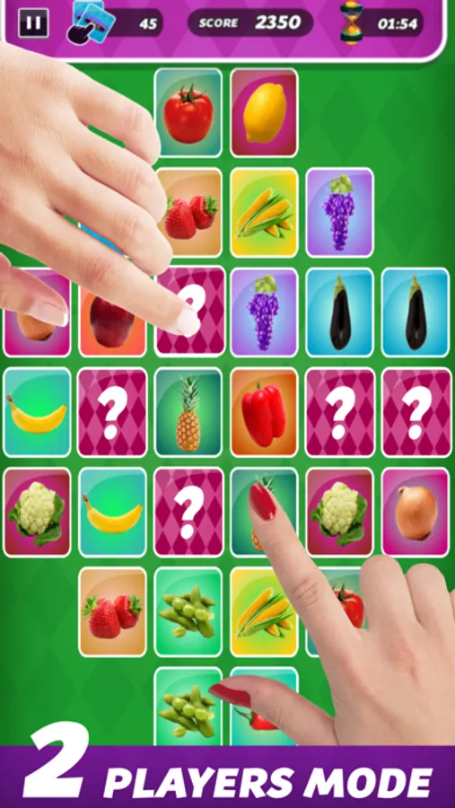 1 or 2 players, just place your device in the middle and take turns to see who can find the most matching pairs.