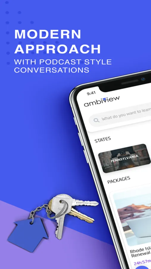 Ambiview is a modern platform for real estate continuing education and real estate license renewal. Our approved real estate courses are ARELLO certified and are delivered through engaging, podcast-like conversations with real estate industry experts. With Ambiview, you can watch or listen to courses through on-demand video or audio podcasts, making learning easy and convenient, even on the go. With features like multistate certificates, premium navigation, PDF guides, we aim to deliver superior value to you.