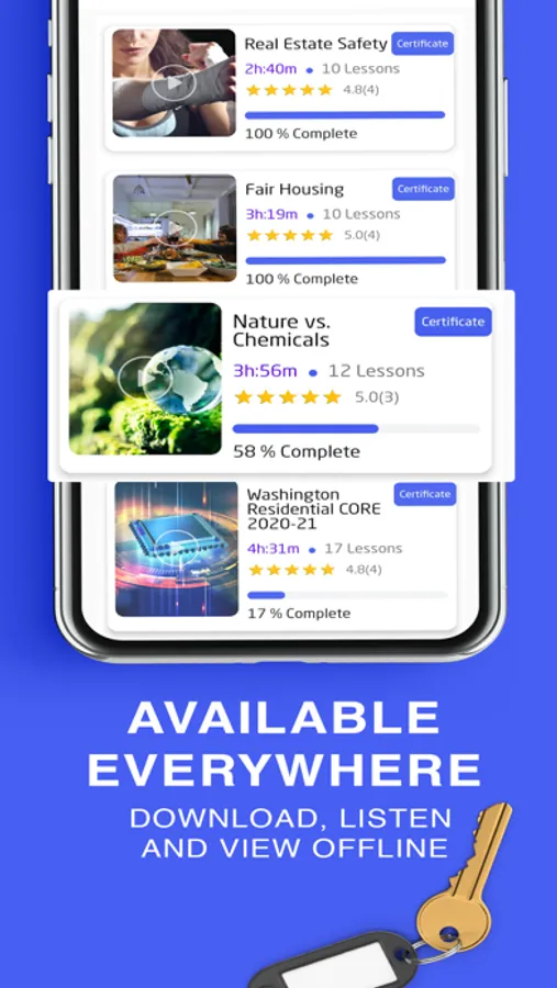 Ambiview offers maximum flexibility and immersive engagement. Simply find a course, listen to the conversation, get your completion certificate and renew your license. It’s that simple. Our platform is best in class, so you can track and manage the entire renewal process with ease. Your progress is tracked across all devices, so you can start a course on your iPhone, move to your iPad and then back again. We’re modern education built for real estate professionals!