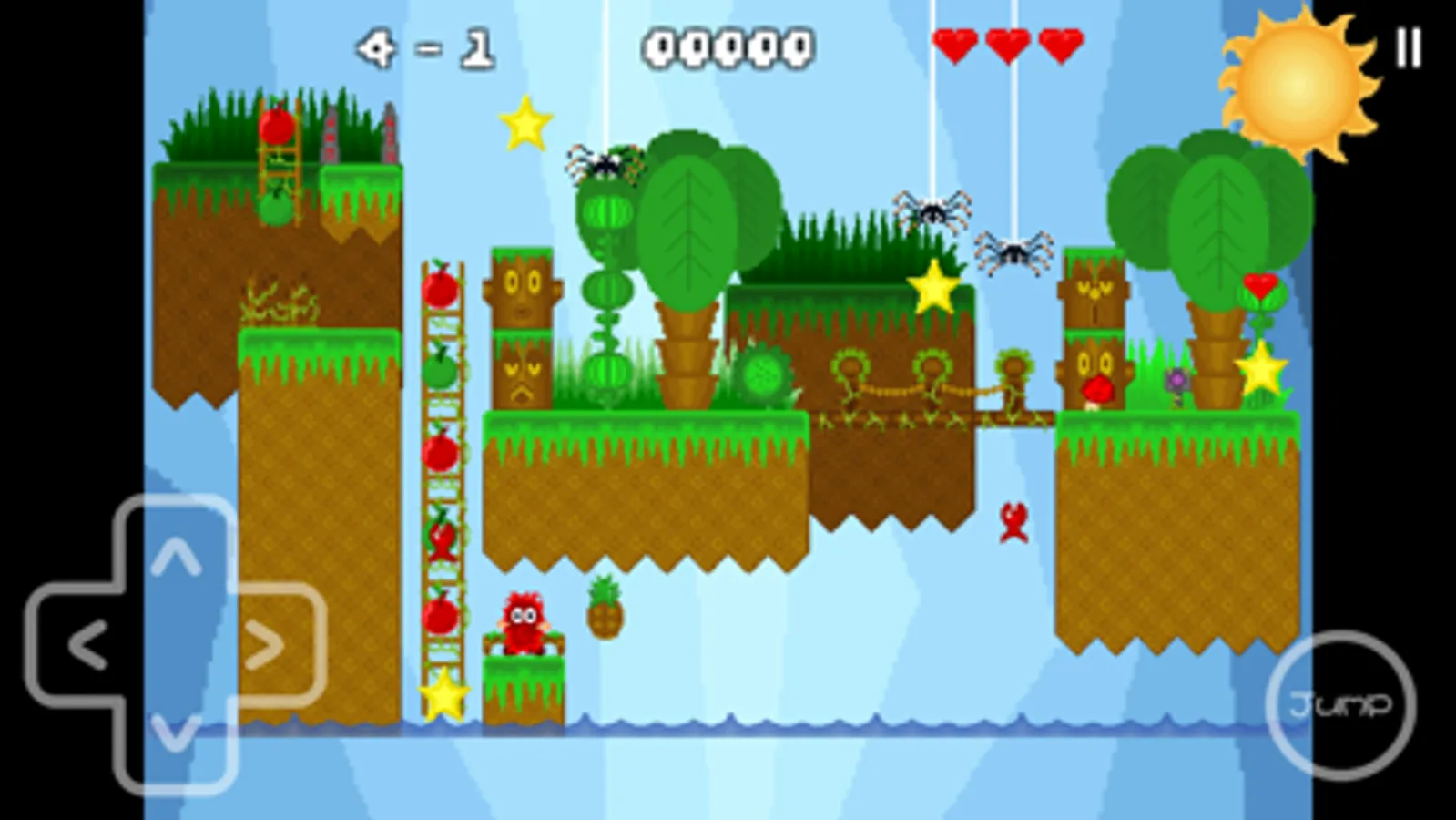 This game contains 48 well designed levels in 4 different themes: forest, frost land, desert, and jungle. There are also various enemies and obstacles, simple gameplay, and retro graphics and music/sound effects.