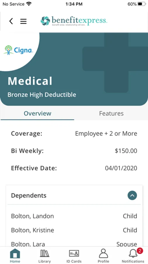 - View plan features like provider, plan name, plan highlights, coverages, costs and dependents