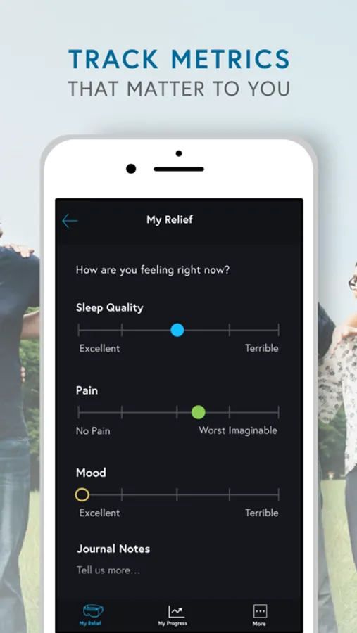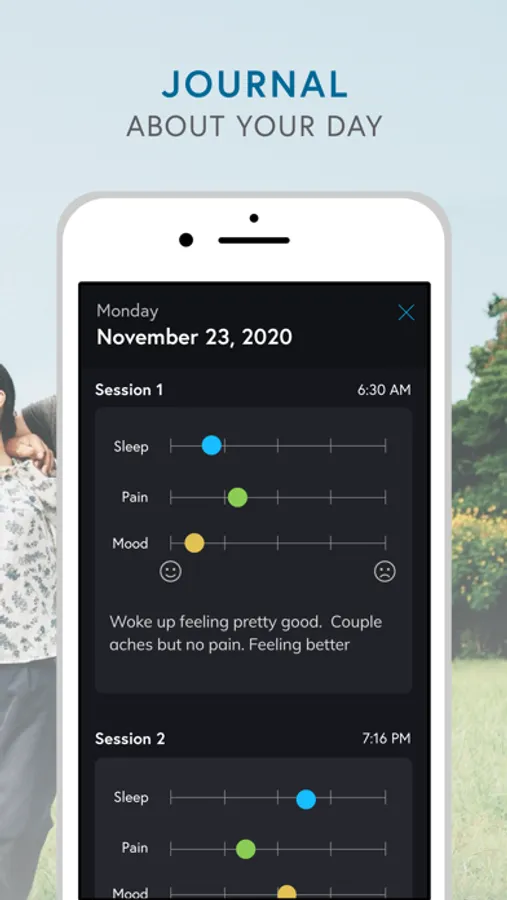 Capture your daily metrics on Sleep, Pain and Mood to help you achieve your optimal wellness.