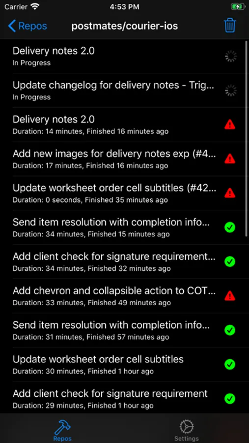 This app allows you to login with Github and view the status of recent builds on https://travis-ci.com. You can add repositories that you want to monitor and see if they pass or fail.