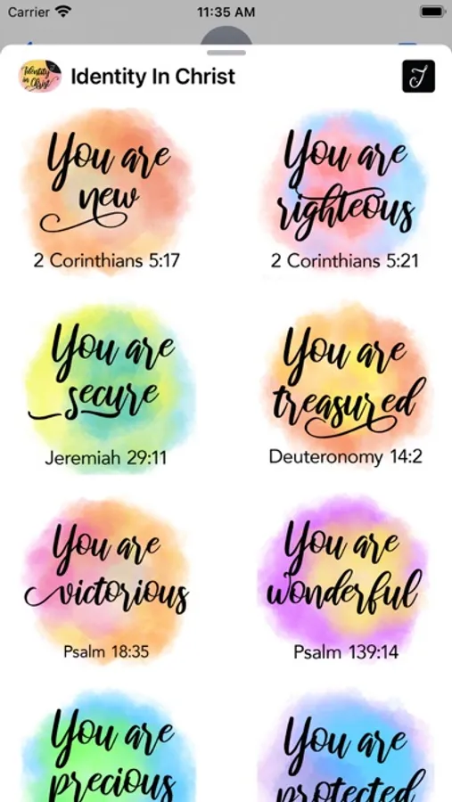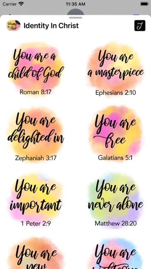 Identity in Christ is a collection of iMessage stickers that remind us of who we are destined to be. This collection was purposely designed so you can easily use it to send to your friends, family and anyone that you think needs a daily reminder of who they are.