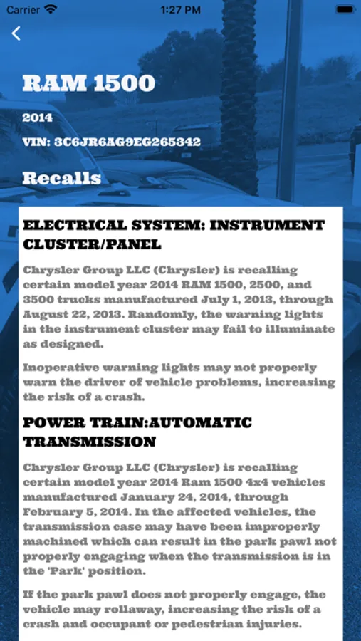 Shop for Genuine Dodge, Chrysler and Jeep Parts and Accessories from anywhere in the USA. Get exclusive content about Mopar vehicles only available in the App. Search for Recall Data by VIN number for any vehicle made in the USA. Decode your VIN to get valuable info about your specific vehicle. More features planned too!