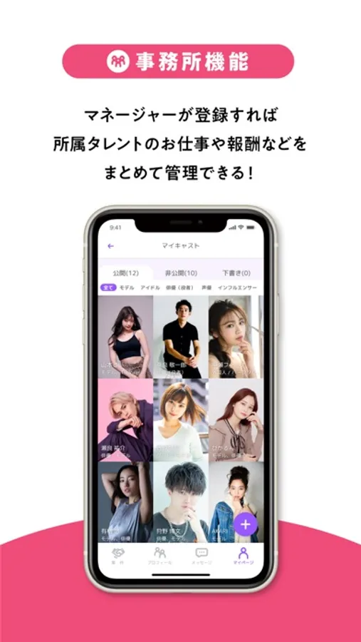 事務所に所属していてもマネージャーが登録することで、所属タレントのお仕事、報酬を管理することができます。