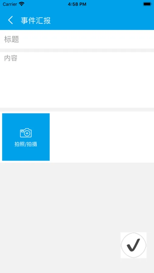 6、事件汇报:用户能够根据各自的权限进行事件的汇报,查看汇报的事件。