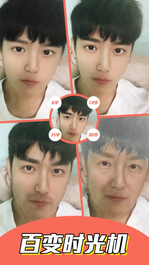 一键变脸,看看10年后,30年后,50年后的你,体验时光穿梭。