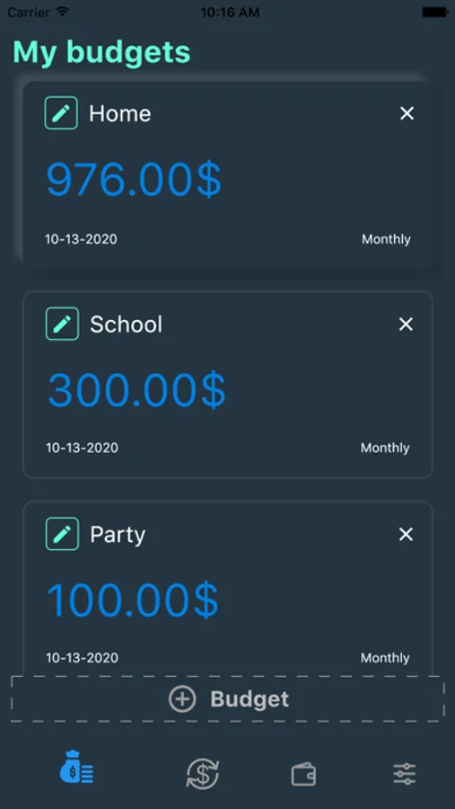 This application is suitable for managing your daily budget, vacation, pocket money, ...