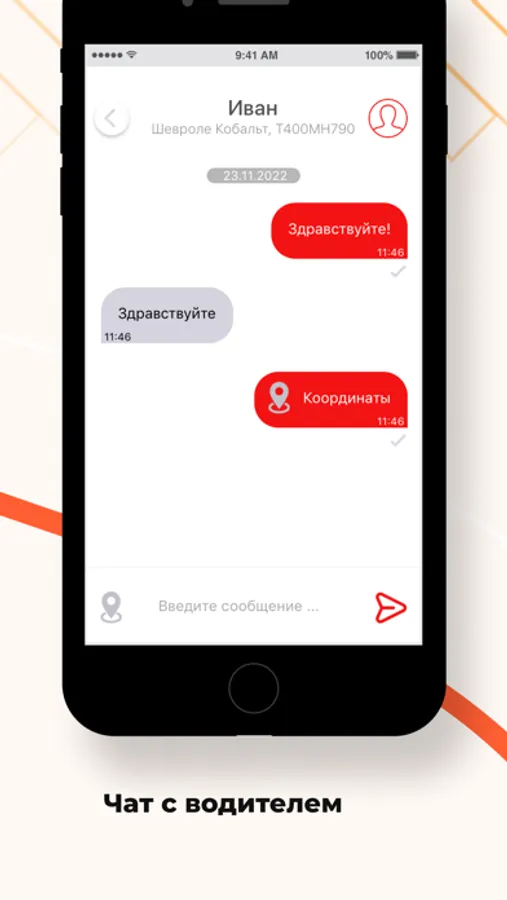 Спросите в чате приложения, где он находится, или отправьте ваши координаты с помощью одной кнопки.