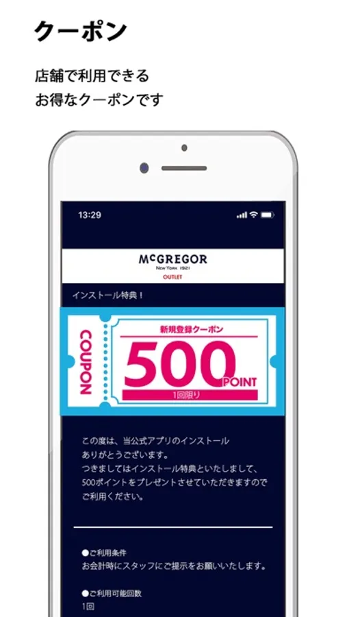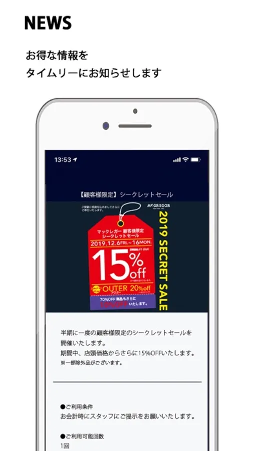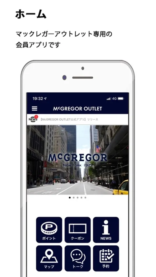 お店の最新情報をお届け/お店でもらえる利用ポイント/アプリ会員証やクーポンでアプリ会員限定の特典をゲット/現在地から近くのお店をナビでご案内