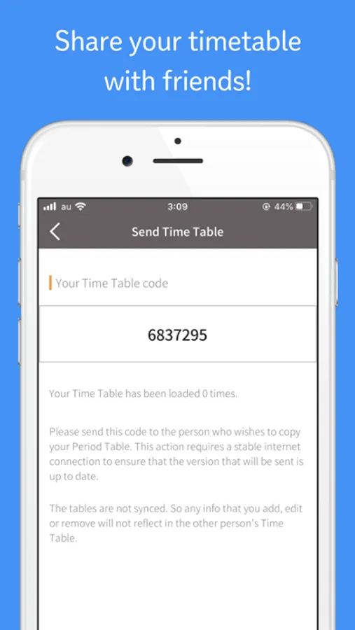 ◆ Send your custom class timetable with your classes or list of subjects to your classmate or friend. After all, sharing is loving!