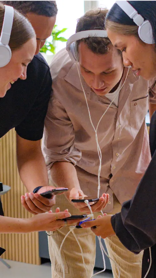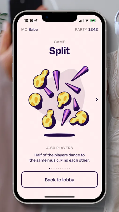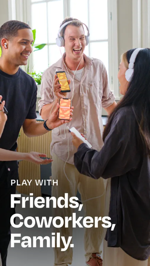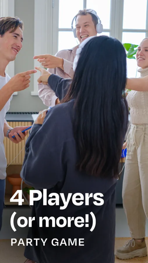 A party game for 4 or more players who are all in the same room wearing headphones. Kind of like silent disco, but with games!