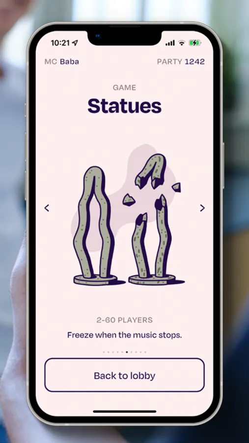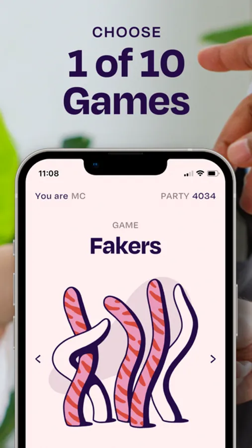 - 10 games: Split, Fakers, Pairs, Leader, Groups, Statues, Possessed, Fakers++, Tree Huggers, and Speaker.