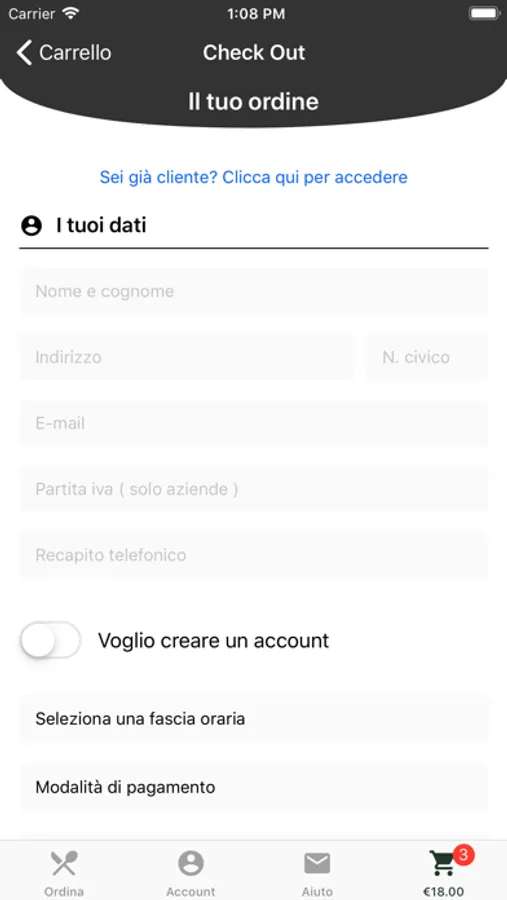 * Registrati o recupera le tue credenziali direttamente dall' app
