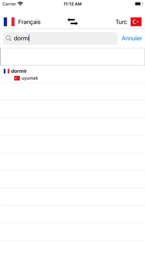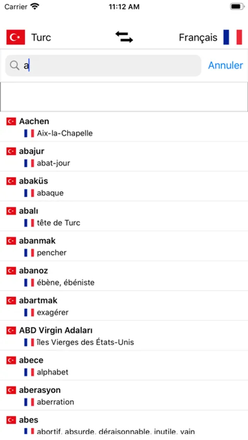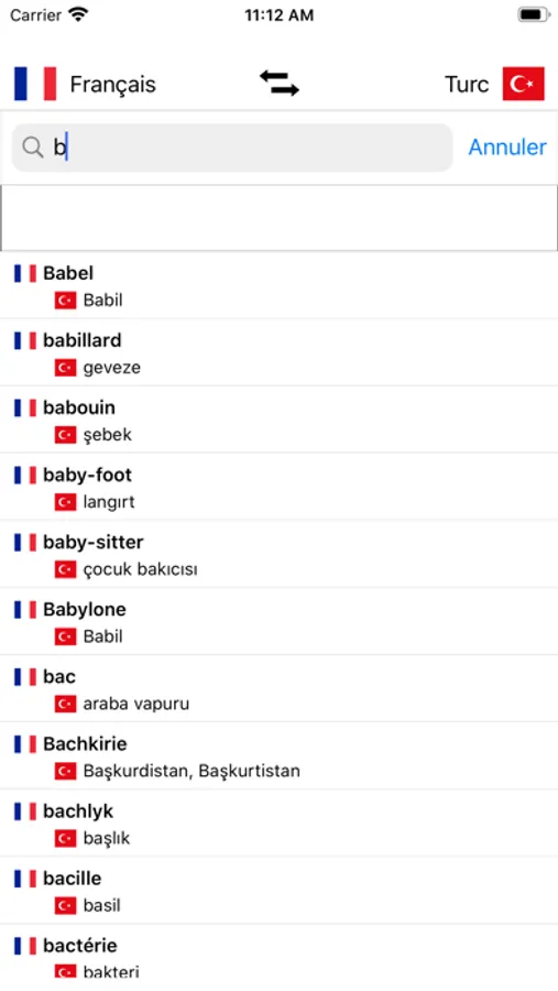 - Recherche à partir des mots en français et à partir des mots en Turc