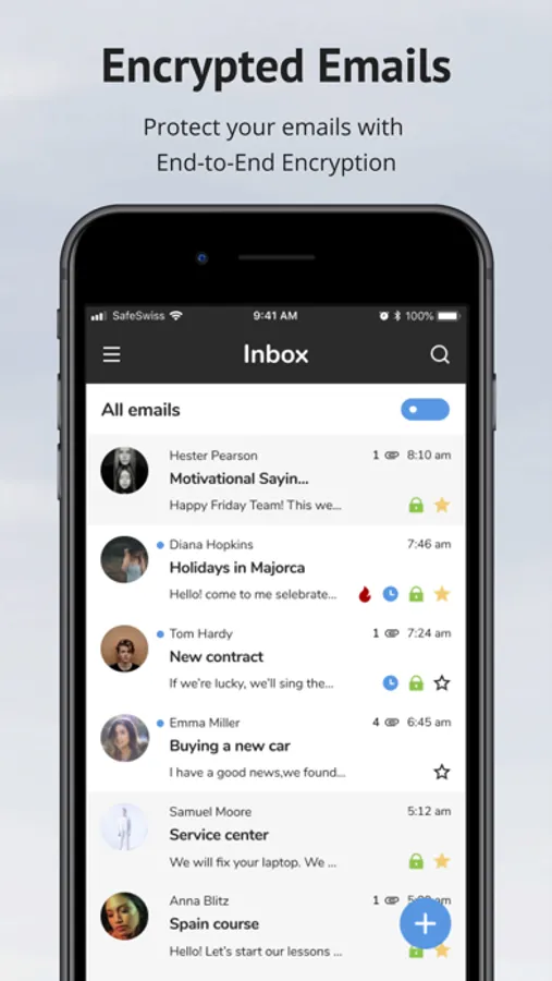 • Encrypted Emails: Send End-to-End encrypted emails between SafeSwiss users