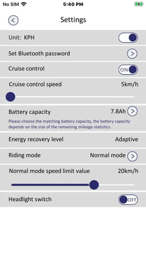 This is a smart electric scooter app. The APP performs wireless data communication with the scooter via Bluetooth. Through the scooter, you can view the detailed information of the vehicle, you can set parameters, and also support functions such as firmware upgrade.
