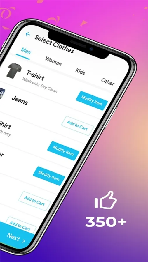 + Select clothes you want to be cleaned