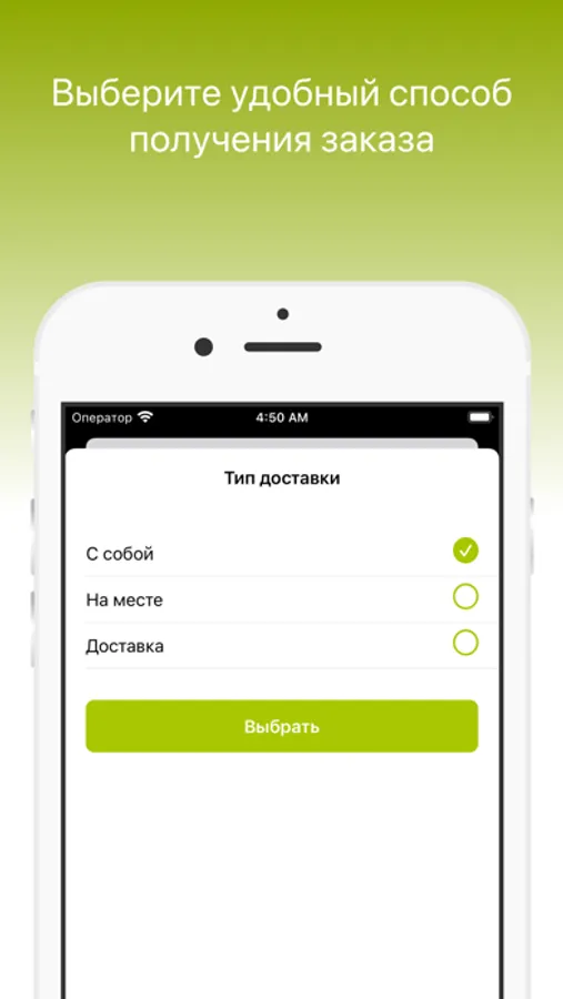 Укажите время, когда хотите прийти за своим заказом или выберите доставку с указанием времени и адреса доставки.
