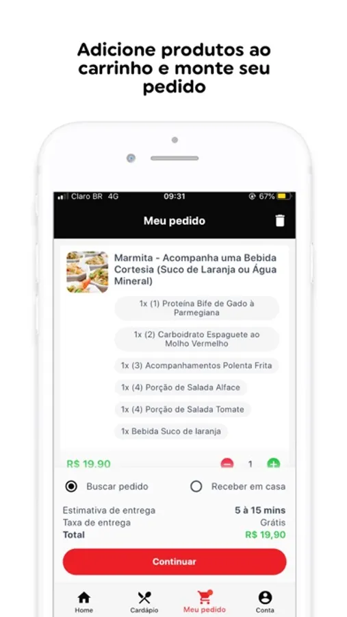 No app, você encontra de forma rápida o cardápio completo e ainda pode utilizar a ferramenta de busca para localizar diretamente os produtos que você deseja.
