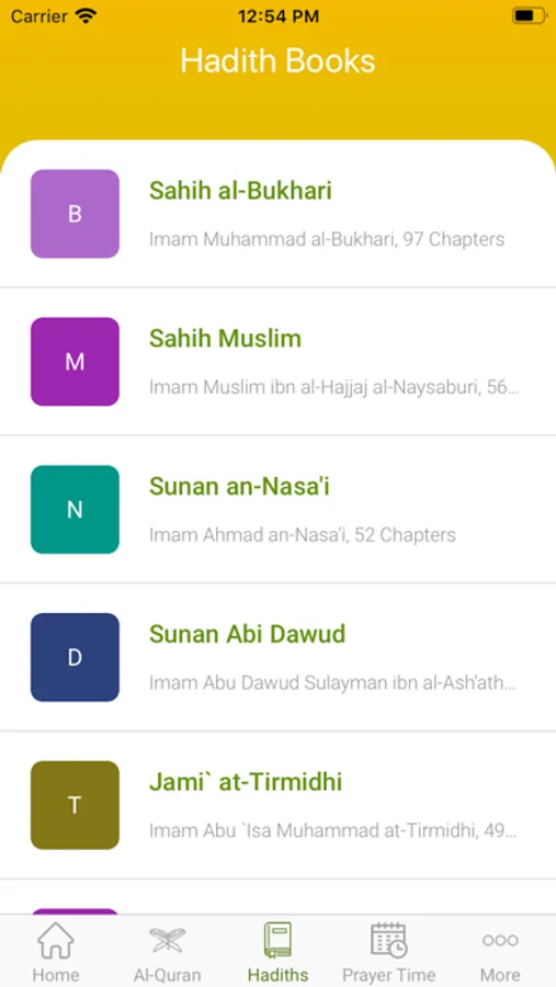 This app also has feature of each namaz notifications along with admin notifications on regular basis. Under Hadith we have all chapters of hadith six books (sunnah).