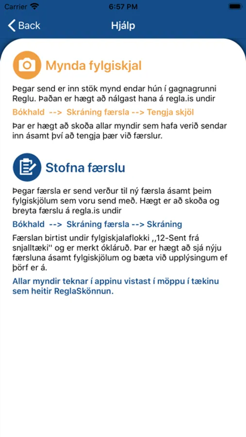 You can scan attachments with you mobile and in a simple way send them into Regla's system. Additionally you can create transactions along with their attachments. When that is done a new transaction is created, the attachment is added and the transaction can be viewed on regla.is