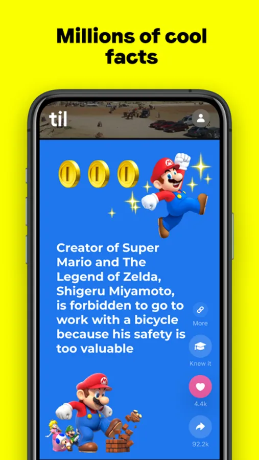 - Swipe up or down to explore millions of cool and mind-blowing facts packaged in the short video format