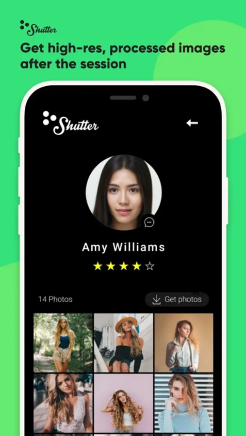 PHOTOGRAPHERS. Join Shutter Studio and use it to connect with your friends, models and clients to create new pictures for them. During the session photographer can control the settings to achieve maximum quality, shoot JPEG and RAW. After the shoot pictures stay with the photographer to edit and send through the app.