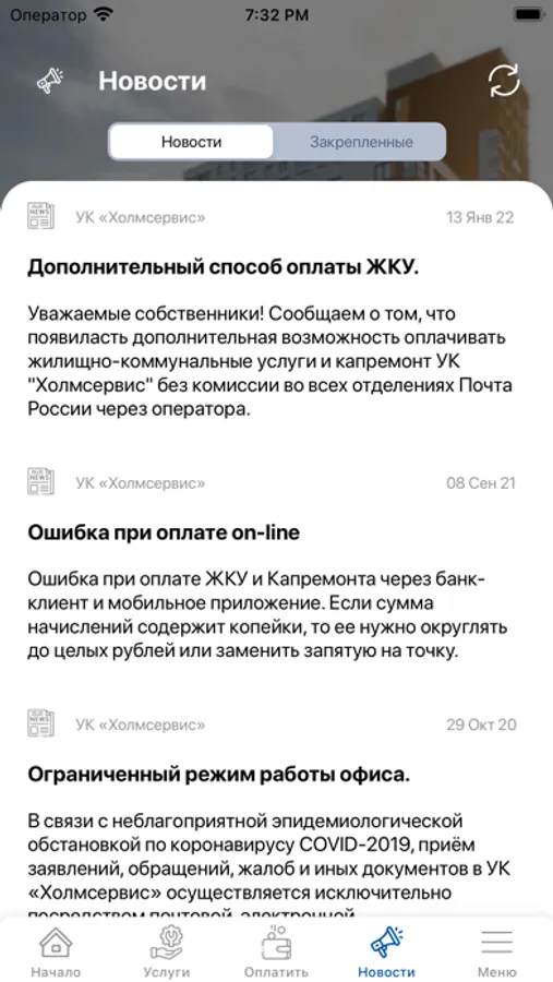 Добро пожаловать в мобильное приложение «УК Холмсервис»!