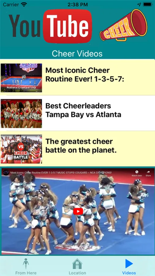 The CheerzHere application provides cheerleaders, couches, parents a reference app to find the best cheerleading groups from where they are or specific towns in the USA. Also, for more reference are the many videos of best in class cheerleading groups.