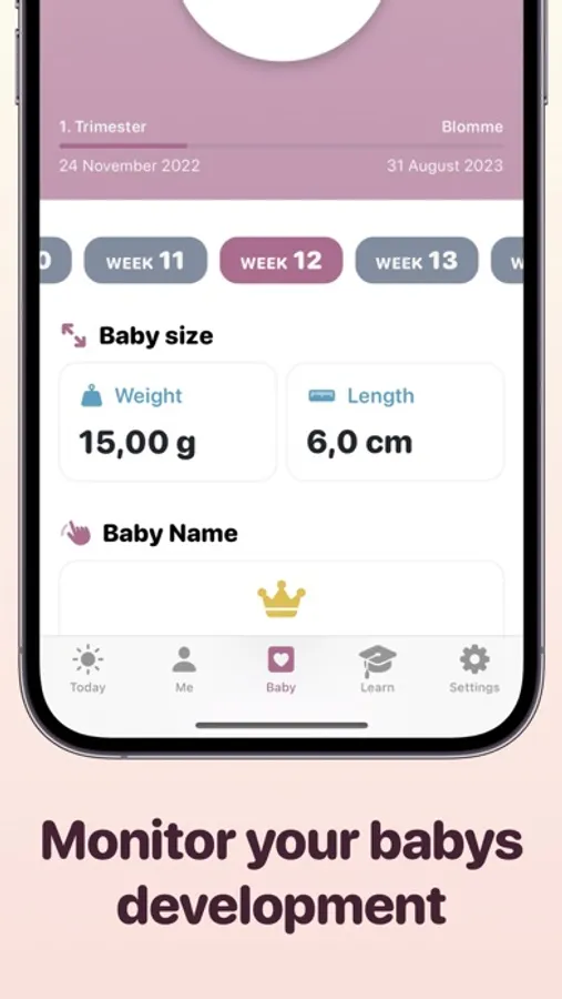 In addition to these essential features, our app also offers a range of resources to help you stay informed and educated about your pregnancy. Our pregnancy learn content provides informative articles and resources to help you learn about various aspects of pregnancy and childbirth. And with our baby weight compared to different objects feature, you can see how your baby is growing in comparison to everyday objects, helping you visualize their size and development.