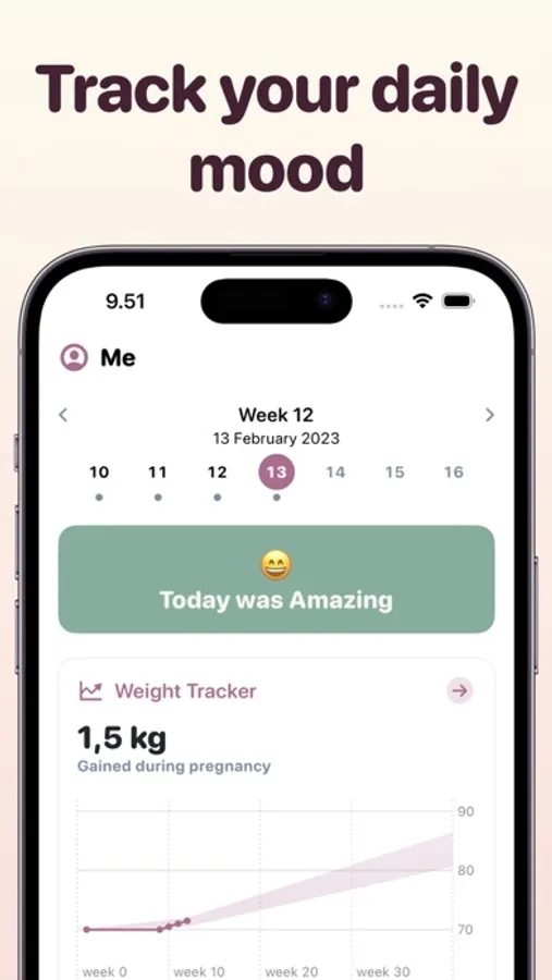 Pregnancy tracker by Bornly provides a wealth of features to help you monitor your health and your baby's development. From the pregnancy tracker, which enables you to keep track of both your health and your baby's progress, to the daily mood logger, which helps you monitor your emotional well-being, we offer all the tools you need to have a healthy and positive pregnancy experience.