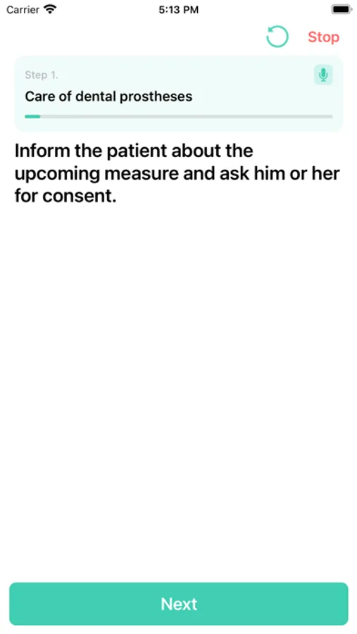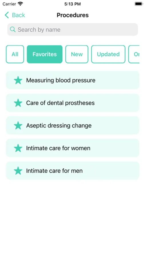 Procedures include step-by-step guidelines for following protocols. Procedures can be controlled through voice commands via Bluetooth headset, ensuring that the user experience is entirely handsfree, as well as manually. Users will see procedures specific to their institutions and all publically available procedures. Procedures are classified into categories. Users can mark procedures as favourites and see their most used procedures.