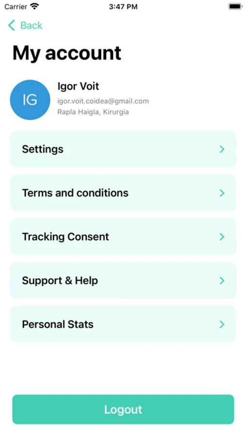 Users can see their personal statistics, including their most popular procedures, average procedures per day, average time per procedure and statistics related to their activity while using the application.