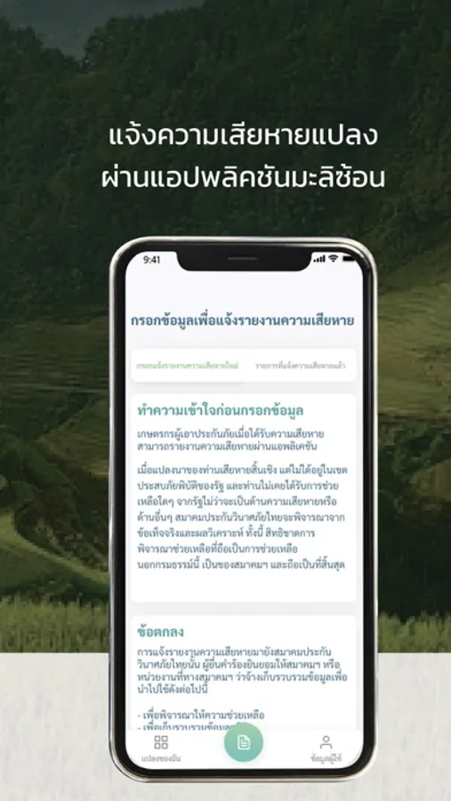 แอปพลิเคชันที่ช่วยเหลือเกษตรกรที่ประสบภัยพิบัติแต่ไม่ได้อยู่ในพื้นที่ที่ประกาศภัยพิบัติ โดยช่วยลดขั้นตอนและลดระยะเวลาในการแจ้งรายงานความเสียหาย ซึ่งโมบายแอปพลิเคชัน จะใช้เก็บข้อมูลเกษตรกร รูปภาพความเสียหายจากเหตุภัยพิบัติ ตำแหน่ง ของสถานที่ประสบภัย ทั้งนี้ยังช่วยให้หน่วยงานที่เกี่ยวข้อง สามารถตรวจสอบข้อมูลและดำเนินการช่วยเหลือเกษตรที่ประสบภัยได้อย่างครอบคลุม