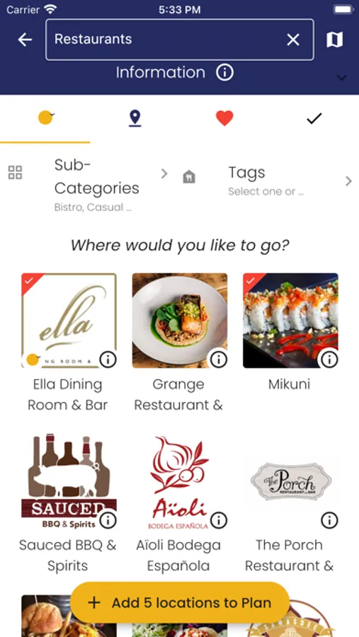 Our planning tool allows you to create a plan and share it with others. You can invite friends to join your plan, vote on what to do, and chat to finalize the details of your itinerary. Click on Map View to see where things are and choose a mapping app for directions and drive times.