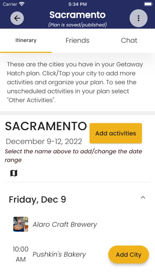 Hatch a plan, explore the options, save your favorites, share with friends and family, share feedback, make suggestions, finalize your itinerary, use the Map View to see where things are, connect to a mapping app for directions and drive times.