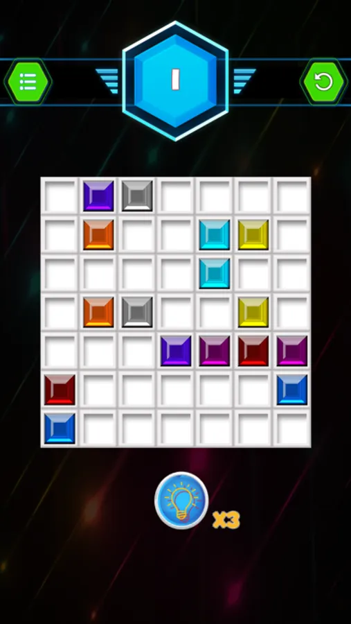 Connect the block of the same color. Connect all pairs, and cover the entire board to solve each level. Be careful not to overlap connections. If you get stuck, hints can help you out.