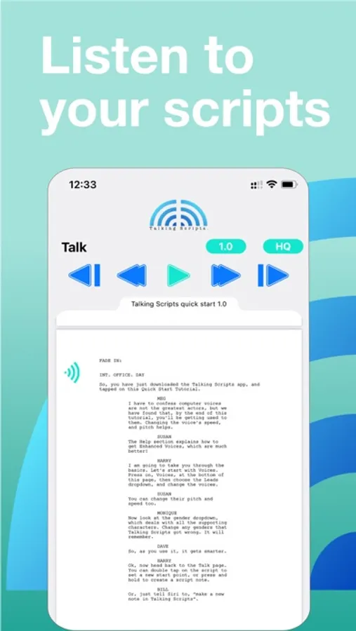 "I was desperate for an app that could read me scripts in a simple easy way, dumping all the stuff I didn’t need to hear and getting me into the story. Talking Scripts is that app!"