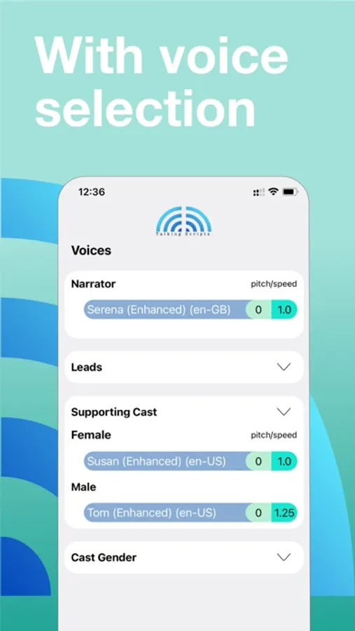 With advances in Apple’s text-to-speech technology, we found a way to create an app which ‘reads’ a script to you, one that knows male from female characters, allowing you to have different voices for men and woman and your leads. An app that doesn’t get bogged down in reading headers, footers, page number, etc.