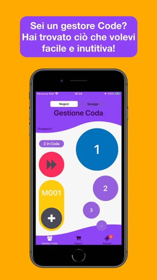 Se sei un gestore Code, l'app tramite un accesso personale, diventerà un valido aiutante per gestire la coda con biglietti provenienti da app o generati manuale.