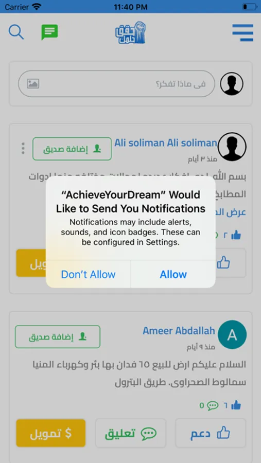 يعمل تطبيق حقق حلمك كوسيلة تواصل بين الطرفين وليس كوسيط أو شريك في الاستثمارات.