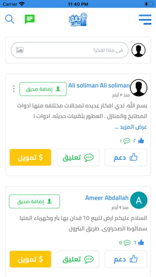 • يتم عرض المنشورات على المستثمرين بهدف التواصل مع المهتمين منهم.