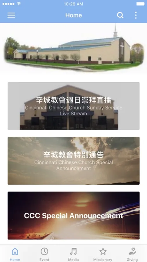 Also offer a convenient tool to pull people closer to the lord Jesus and father God through Cincinnati Chinese church's message. 歡迎您來到辛城教會APP,盼望您能仔細的瀏灠,得到您想要的資料。辛城教會是辛城華人屬靈的大家庭,除了提供完整的教會生活之外,我們真切的關心人靈魂的需要,希望每個人都得到基督的愛和生命。如果你有任何建議,請與我們連繫,願神祝福您並以祂聖靈引導您人生的每一步。請來訪問我們的教會 。