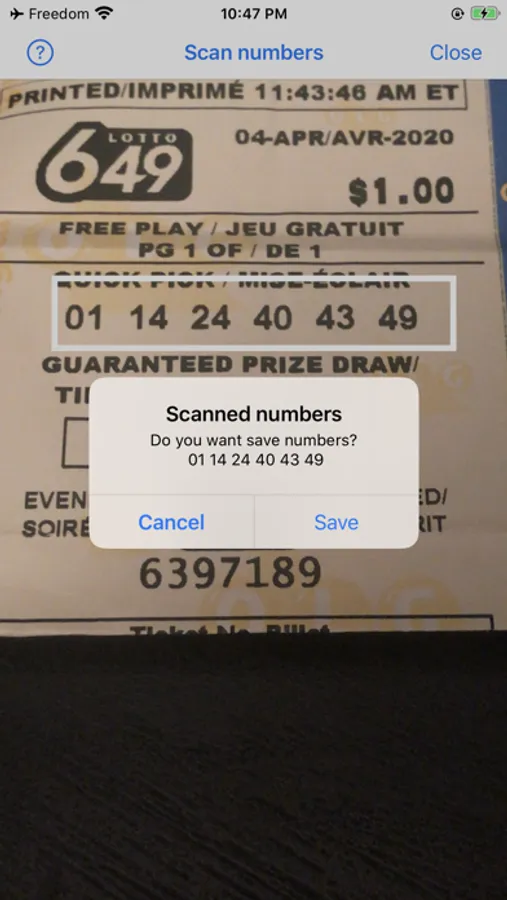 - Scan 6 numbers from the previous ticket using the iPhone camera.