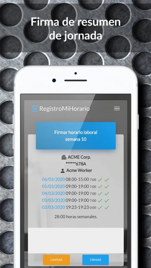 Con la aplicación «RegistroMiHorario» podrá llevar a cabo un registro diario de la jornada, pausas y horas extras en su empresa.