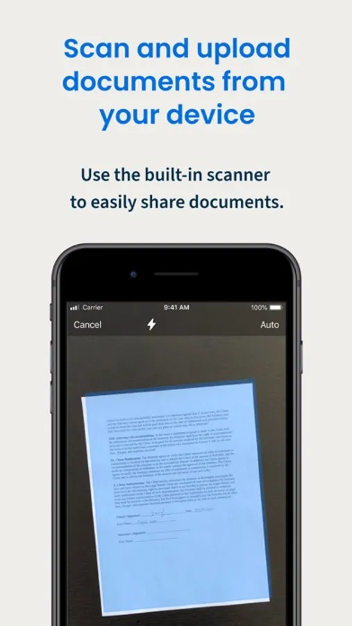 ∙ Securely send documents. Scan documents using the built-in scanner or upload them directly from your file folder or camera roll.