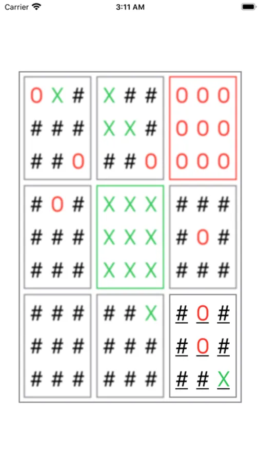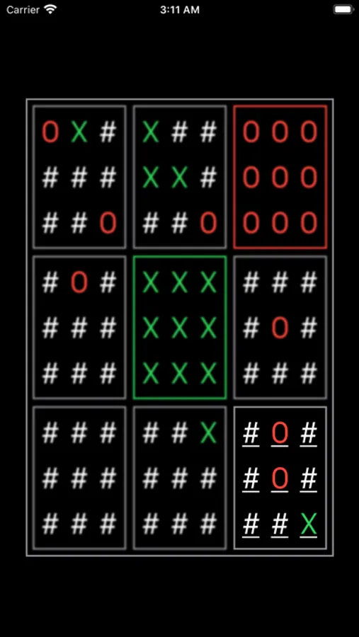 a board game composed of nine tic-tac-toe boards arranged in a 3 × 3 grid
