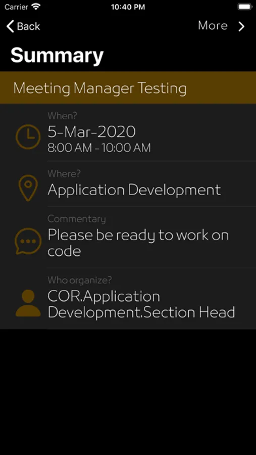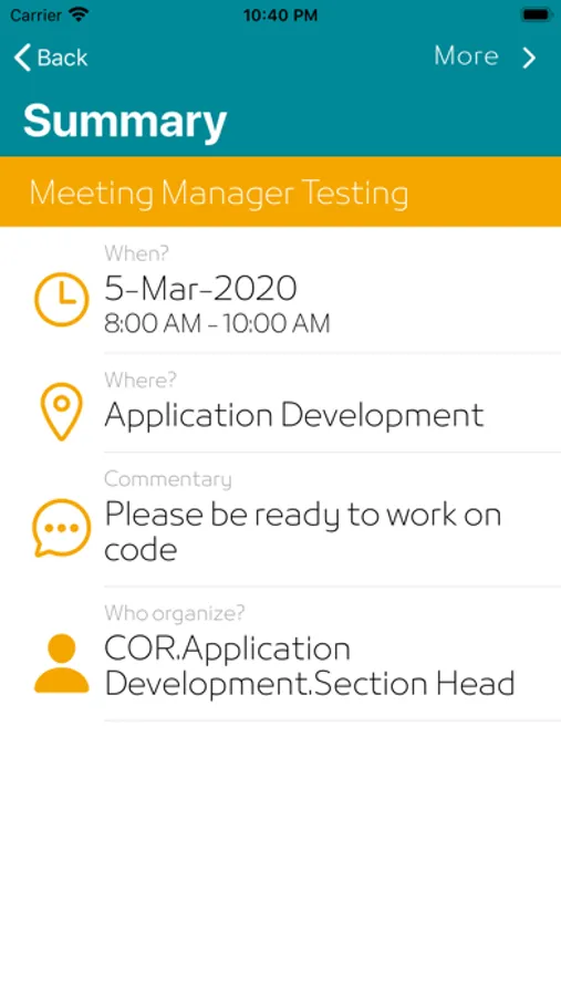 Tap on the meeting name from the Home screen to get a summary and more information about the meeting.